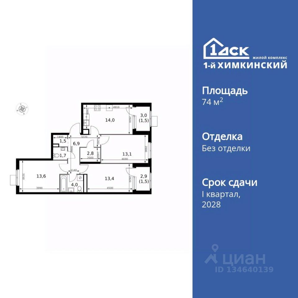 Продаётся 3-к квартира номер 150 общей площадью 74 кв.м. на 5-м этаже 10 этажного здания. Без отделки. Цена с учётом скидки.