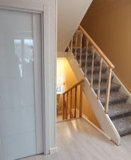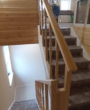 Большой 170 кв, 3 этажа. Первый этаж- холл, гостинная, сауна, с/у, кухня с выходом на веранду. Второй этаж- с/у, три спальни, две с выходом на панорамную веранду. Третий этаж- свободное пространство с полками для хранения, тренажёрами и бильярдным столом.