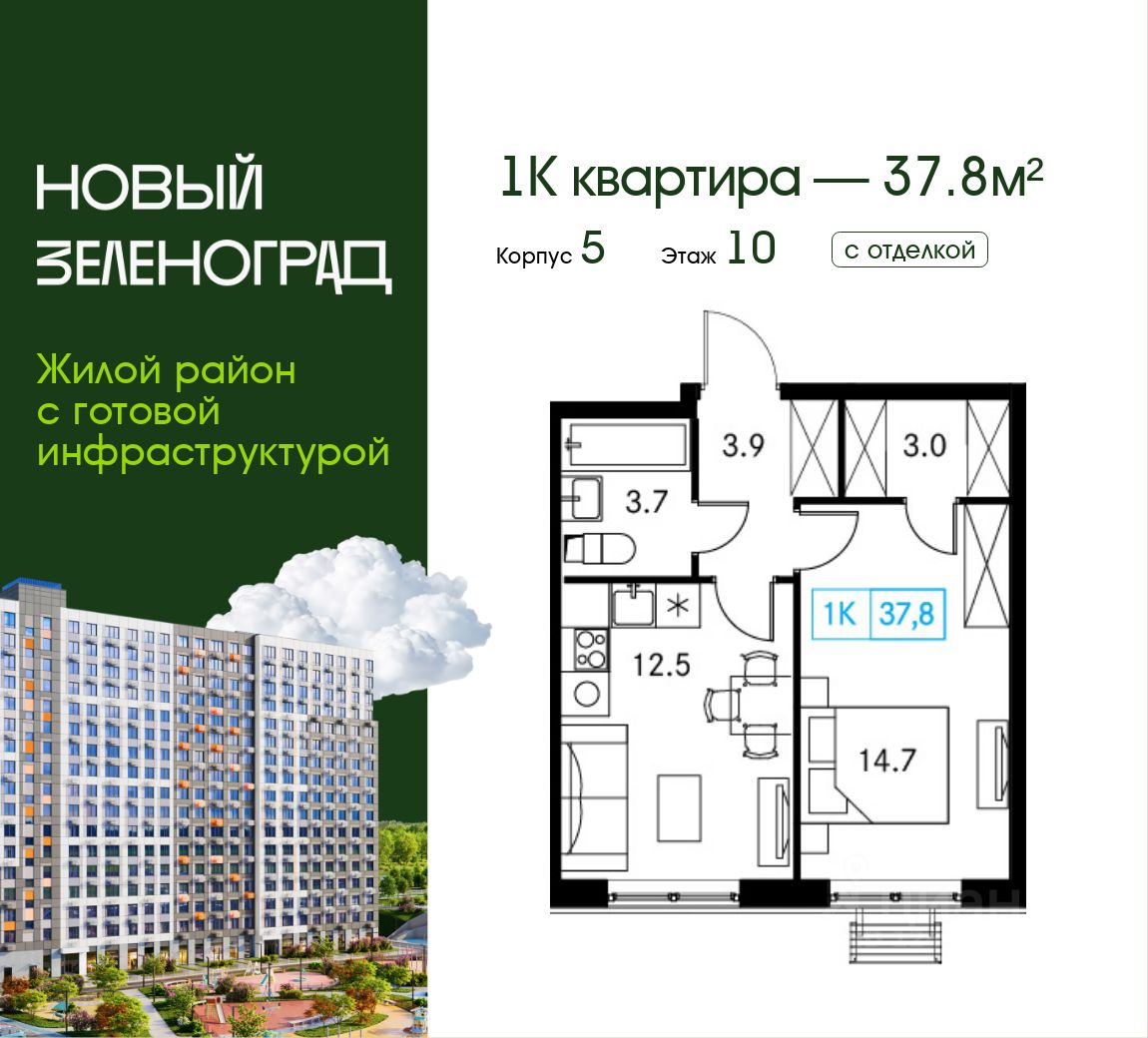 | 1-комнатная | 37.8 м² | 10 этаж из 18 | Срок сдачи — IV кв. 2026 года