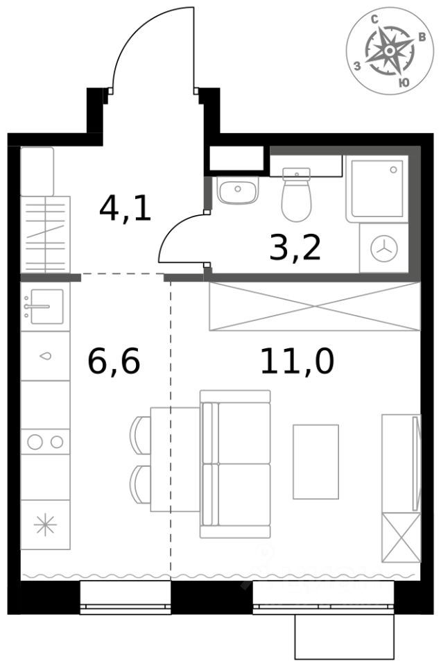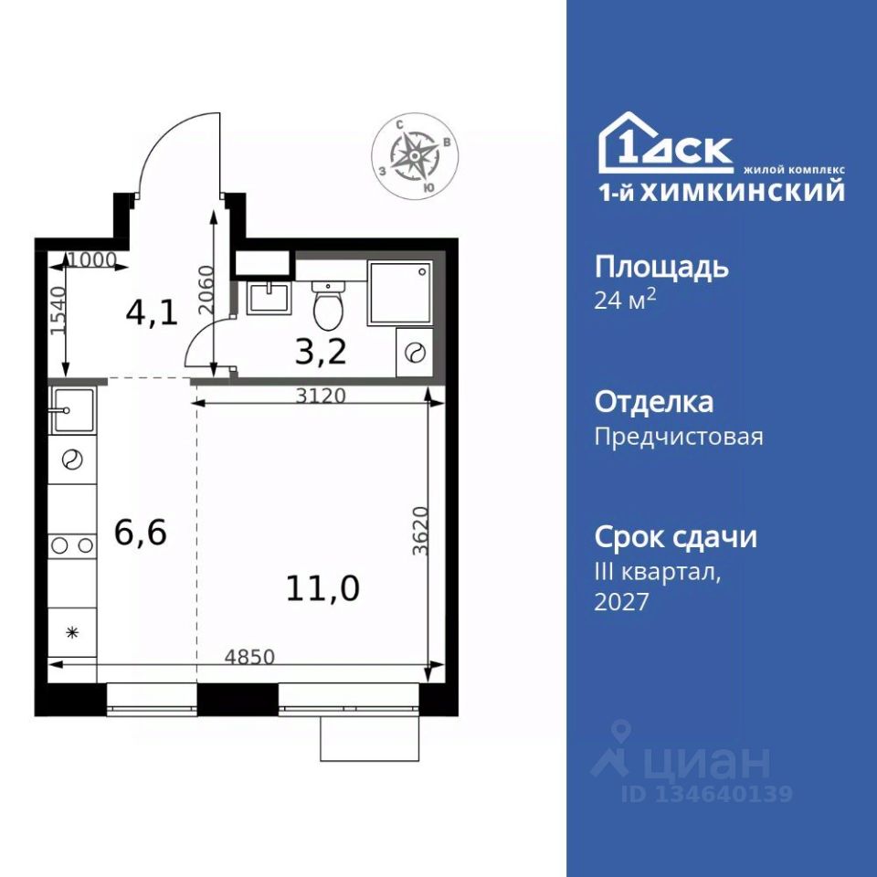 Продаётся квартира-студия номер 238 общей площадью 24.9 кв.м. на 5-м этаже 9 этажного здания. Отделка Whitebox. Цена с учётом скидки.