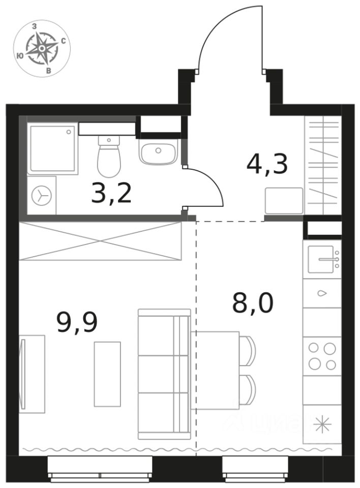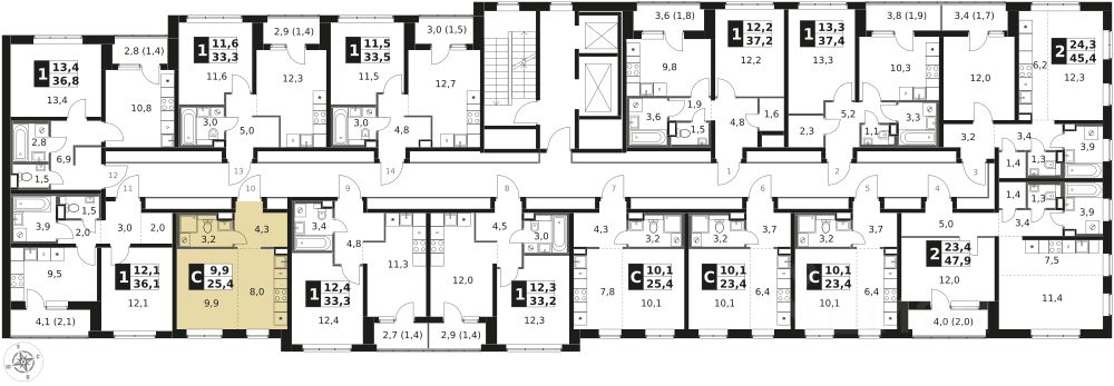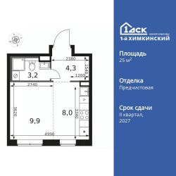 Продаётся квартира-студия номер 10 общей площадью 25.4 кв.м. на 2-м этаже 17 этажного здания. Отделка Whitebox.