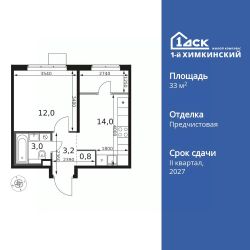 Продаётся 1-к квартира номер 603 общей площадью 33 кв.м. на 10-м этаже 17 этажного здания. Отделка Whitebox.