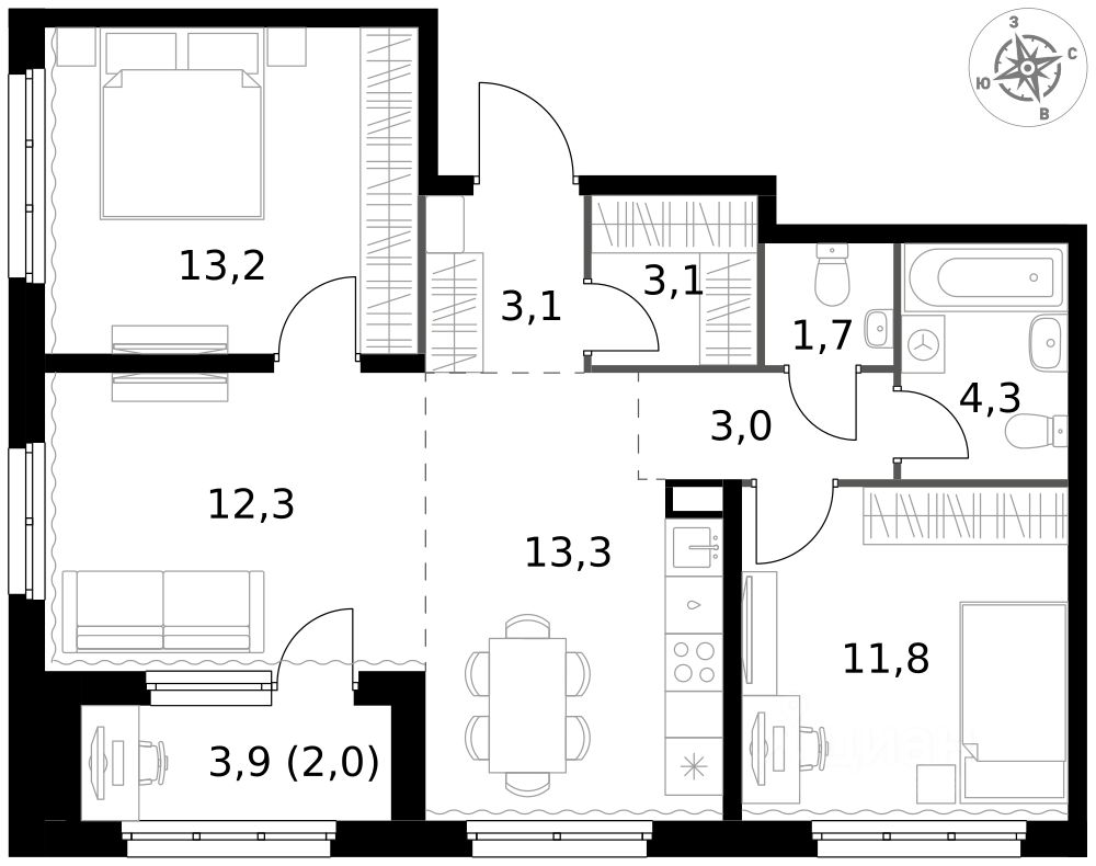 - Евроформат - просторное и удобное жилье с отличной планировкой.