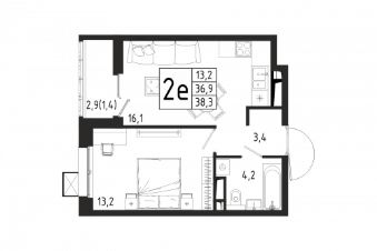 Продаётся 1-комнатная квартира в строящемся доме (Корпус 4), срок сдачи: II-кв. 2027, общей площадью 38.3 кв.м., на 9 этаже. Расположение и транспортная доступность