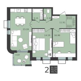 Продаётся 2-комнатная квартира в строящемся доме (Дом 7), срок сдачи: I-кв. 2026, общей площадью 74.71 кв.м., на 2 этаже. ЖК Мишино-2 - это жилой комплекс из 6 корпусов, где вы сможете забыть о шуме и загазованности большого города и в полной мере насладиться природой, пением птиц и свежестью в тишине леса.