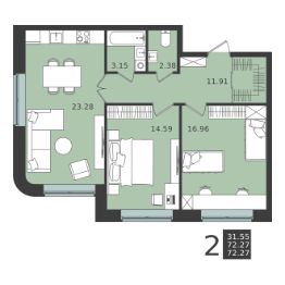 Продаётся 2-комнатная квартира в строящемся доме (Дом 7), срок сдачи: I-кв. 2026, общей площадью 72.27 кв.м., на 1 этаже. ЖК Мишино-2 - это жилой комплекс из 6 корпусов, где вы сможете забыть о шуме и загазованности большого города и в полной мере насладиться природой, пением птиц и свежестью в тишине леса.