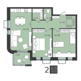Продаётся 2-комнатная квартира в строящемся доме (Дом 8), срок сдачи: I-кв. 2026, общей площадью 74.71 кв.м., на 2 этаже. ЖК Мишино-2 - это жилой комплекс из 6 корпусов, где вы сможете забыть о шуме и загазованности большого города и в полной мере насладиться природой, пением птиц и свежестью в тишине леса.