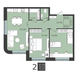 Продаётся 2-комнатная квартира в строящемся доме (Дом 5), срок сдачи: II-кв. 2026, общей площадью 72.27 кв.м., на 1 этаже. ЖК Мишино-2 - это жилой комплекс из 6 корпусов, где вы сможете забыть о шуме и загазованности большого города и в полной мере насладиться природой, пением птиц и свежестью в тишине леса.