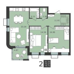 Продаётся 2-комнатная квартира в строящемся доме (Дом 5), срок сдачи: II-кв. 2026, общей площадью 74.71 кв.м., на 2 этаже. ЖК Мишино-2 - это жилой комплекс из 6 корпусов, где вы сможете забыть о шуме и загазованности большого города и в полной мере насладиться природой, пением птиц и свежестью в тишине леса.