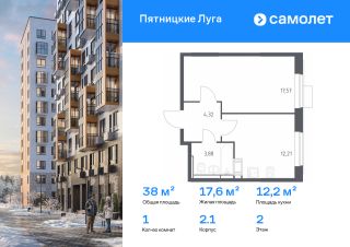 Строим кварталы для жизни с заботой о будущем. Предлагается 1-комнатная квартира комфорт-класса 37,98 кв.м в корпусе 2.1 на 2 этаже, в ЖК "Пятницкие Луга"