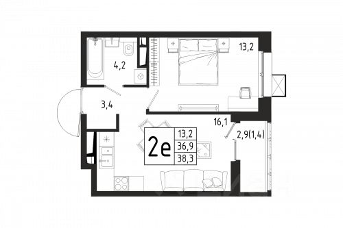 Продаётся 1-комнатная квартира в строящемся доме (Корпус 8), срок сдачи: II-кв. 2027, общей площадью 38.3 кв.м., на 5 этаже. Расположение и транспортная доступность