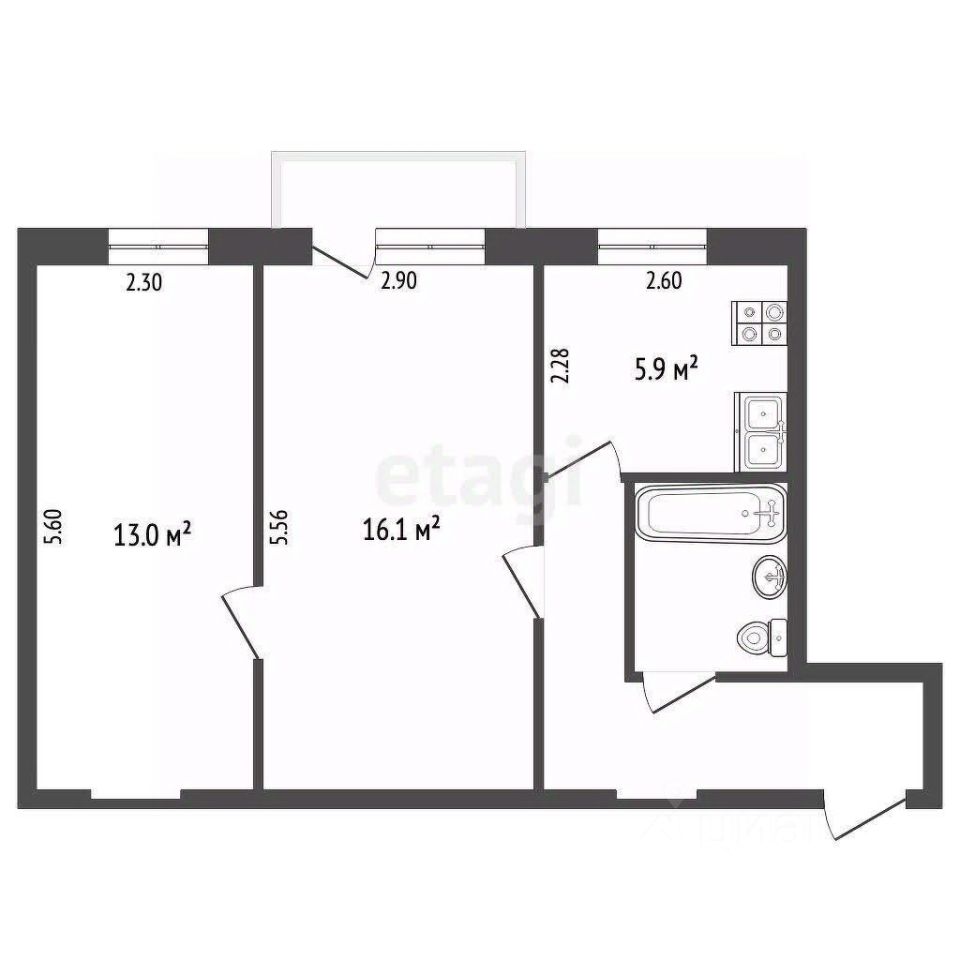 Продается двухкомнатная квартира площадью 44 м2 в кирпичном пятиэтажном доме на 4-м этаже. Окна выходят на соседний двор, линейка.