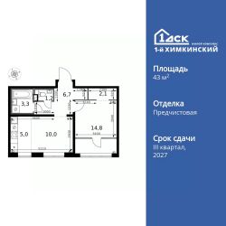 Продаётся 2-к квартира номер 565 общей площадью 43.1 кв.м. на 2-м этаже 16 этажного здания. Отделка Whitebox. Цена с учётом скидки.
