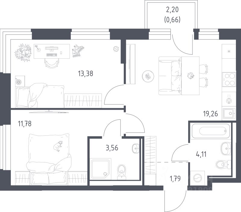 Продаётся 2-комнатная квартира в строящемся доме (Дом 5), срок сдачи: III-кв. 2028, общей площадью 54.54 кв.м., на 6 этаже. "Квартал Ивакино" - это уютные дома и дворы без машин в тихом районе Химок.