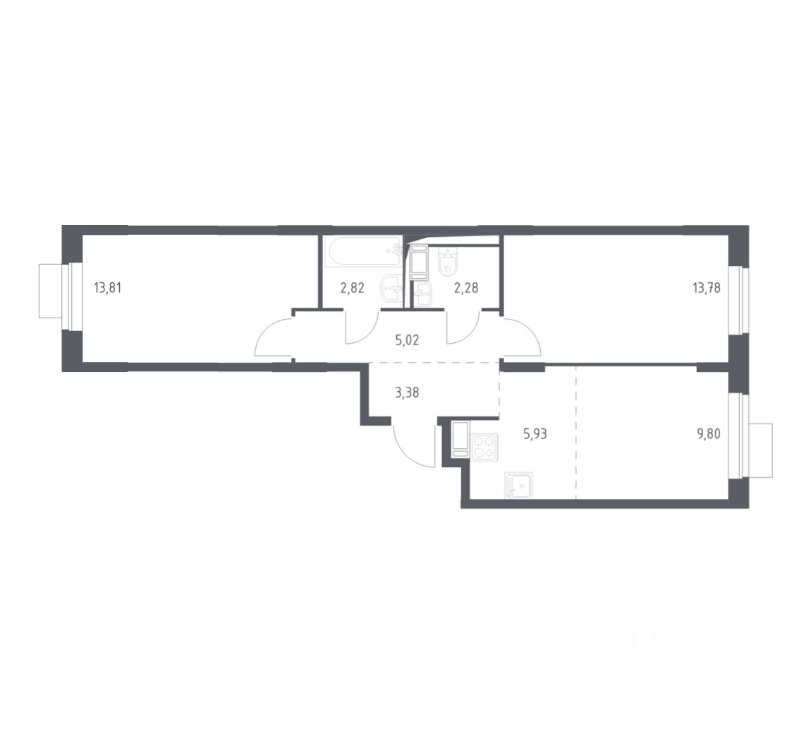 Строим кварталы для жизни с заботой о будущем. Предлагается 2-комнатная квартира оптиум-класса площадью 56,82 кв.м в корпусе 2.1 на 3-м этаже, в жилом комплексе "Пятницкие Луга".