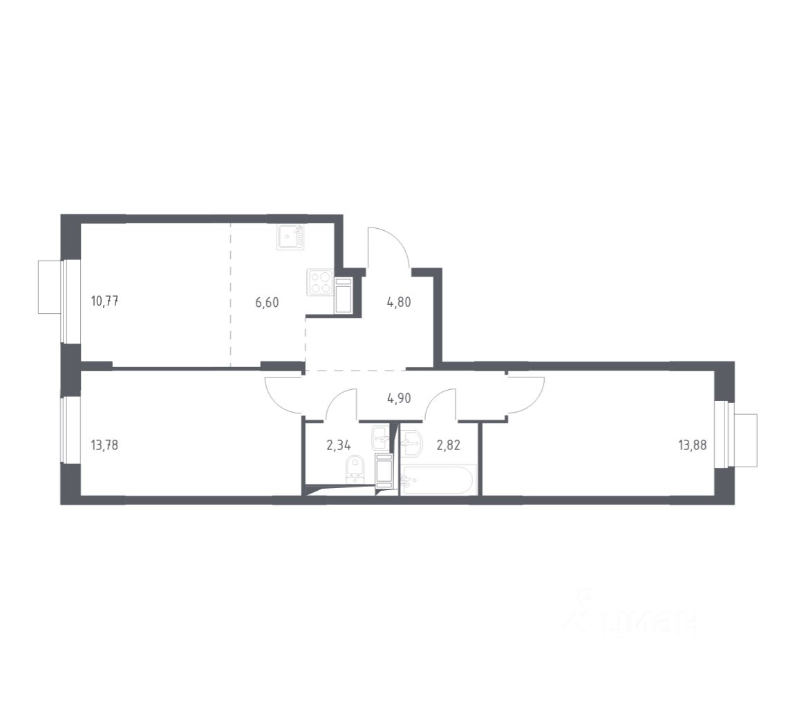 Строим кварталы для жизни с заботой о будущем. Предлагается 2-комнатная квартира оптиум-класса площадью 59,89 кв.м в корпусе 2.1 на 11-м этаже, в жилом комплексе "Пятницкие Луга".