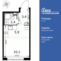 Продаётся квартира-студия номер 303 общей площадью 21.8 кв.м. на 2-м этаже 6 этажного здания. Отделка Whitebox. Цена с учётом скидки.
