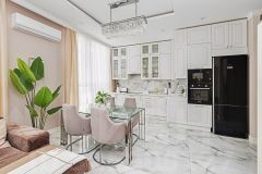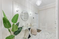 Качественная отделка и повышенный комфорт: Во всей квартире, кроме спален, на полу уложен практичный и стильный керамогранит. В спальнях — ламинат. Для круглогодичного уюта сделан пол с подогревом: в ванной, на кухне и в коридоре — электрический теплый пол. Также в коридоре есть автоматическая подсветка, включающаяся при движении.