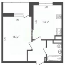 Просторная 1-комнатная, 48,9 м². Уникальная планировка с увеличенной кухней-гостиной (15,2 м²) — идеально для жизни и приема гостей.