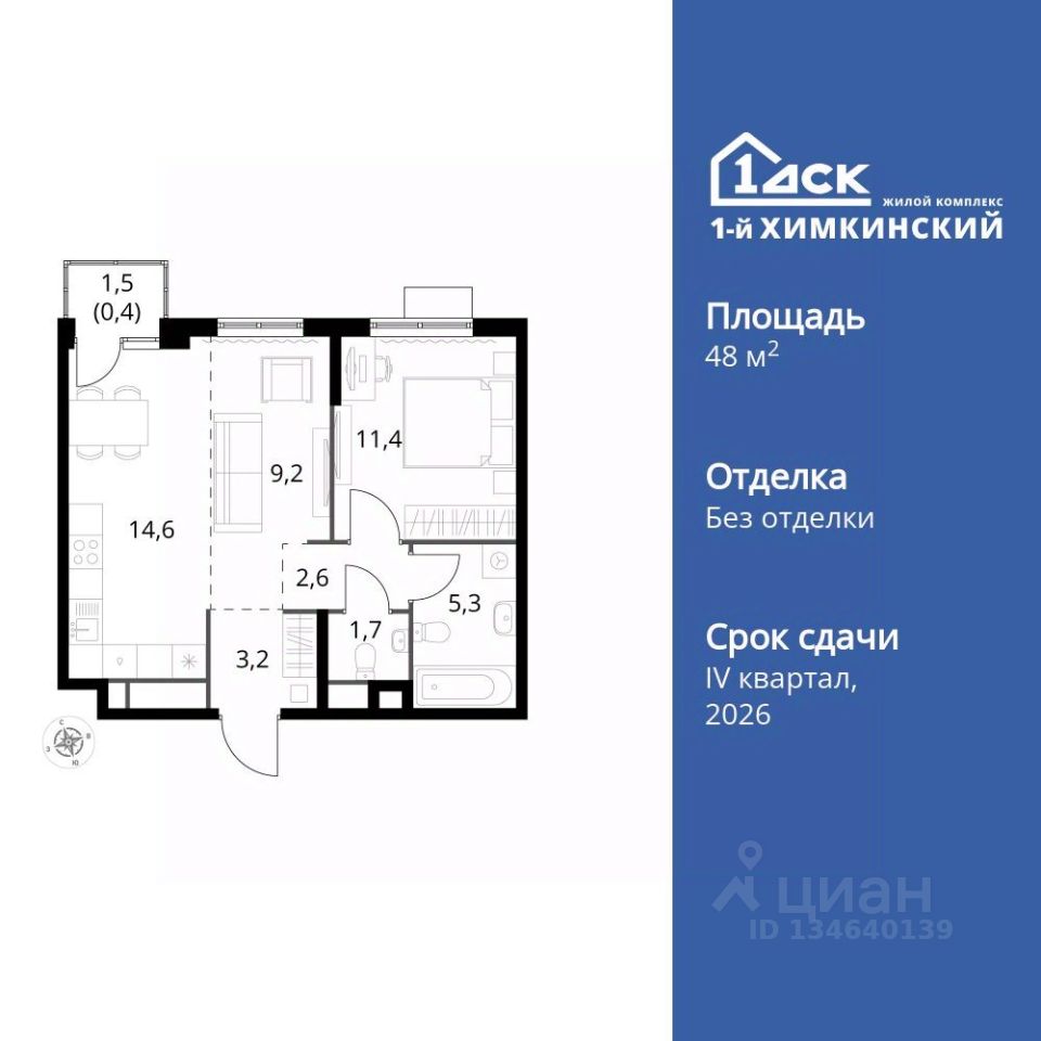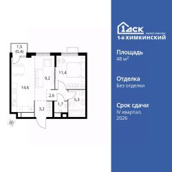 Продаётся 2-к квартира номер 105 общей площадью 48.4 кв.м. на 16-м этаже 17 этажного здания. Без отделки.