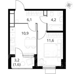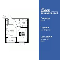Продаётся 1-к квартира номер 319 общей площадью 34.4 кв.м. на 5-м этаже 12 этажного здания. Без отделки.