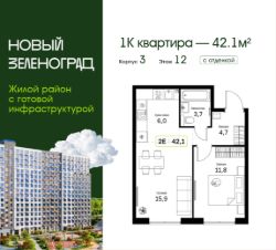 | 1-комнатная | 42.1 м² | 12 этаж из 18 | Срок сдачи — IV кв. 2025 года
