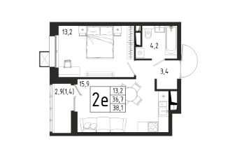 Продаётся 1-комнатная квартира в строящемся доме (Корпус 8 (2 очередь)), общей площадью 38.10 кв.м., на 2 этаже.