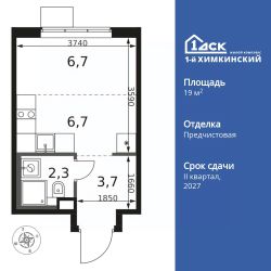 Продаётся квартира-студия номер 557 общей площадью 19.4 кв.м. на 5-м этаже 17 этажного здания. Отделка Whitebox.