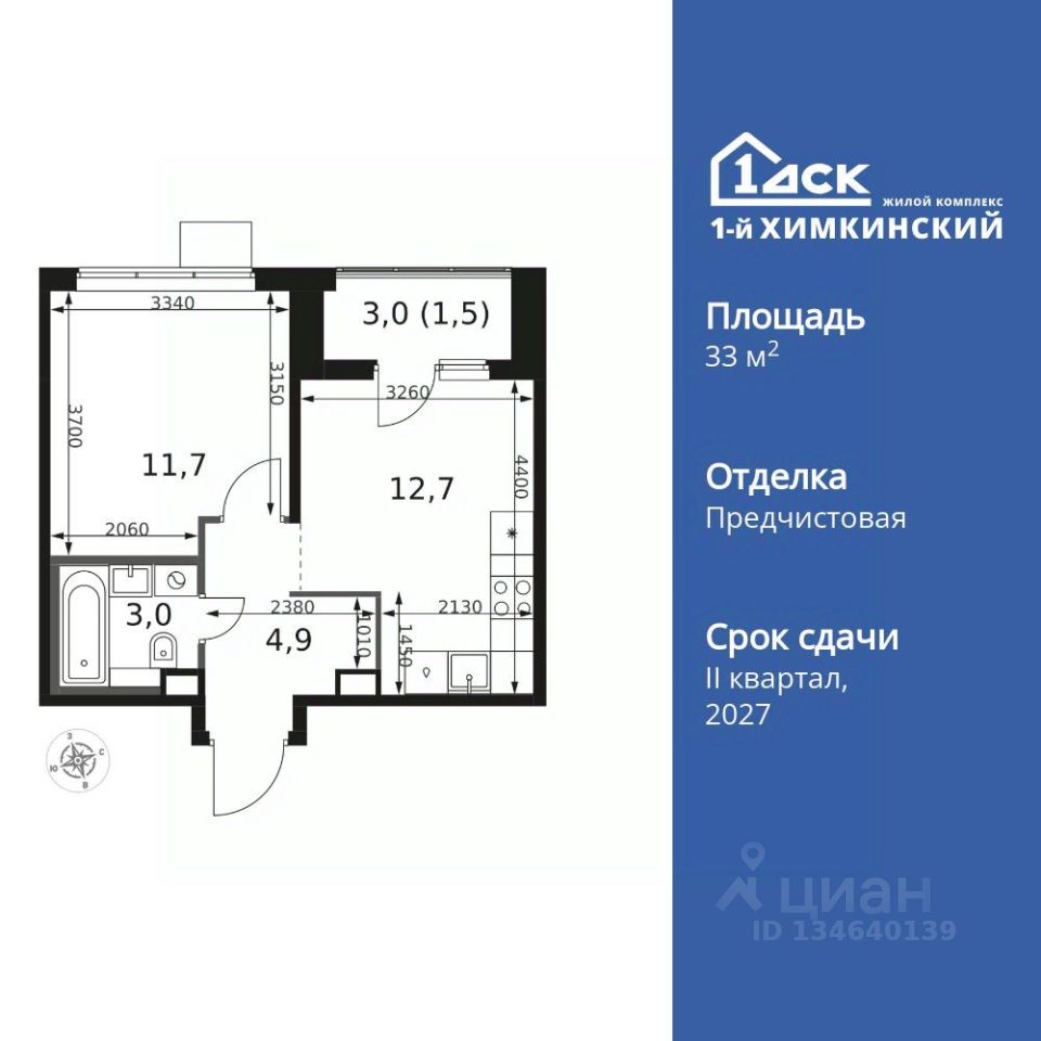 Продаётся 1-к квартира номер 182 общей площадью 33.8 кв.м. на 14-м этаже 17 этажного здания. Отделка Whitebox.