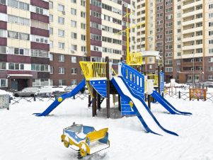 • Детская и спортивные площадки огорожены забором, обеспечивая дополнительную безопасность для детей.