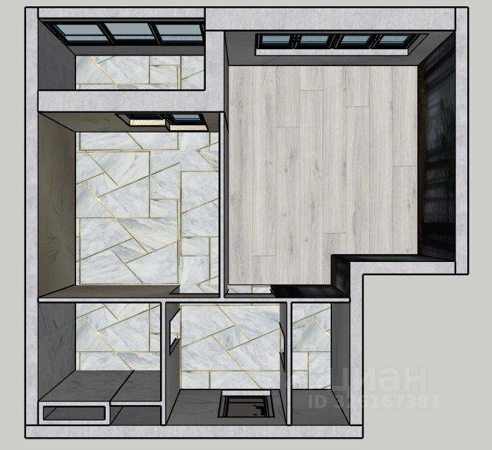 В квартире нет несущих стен, что позволяет создать индивидуальную планировку: евродвушку или просторную студию, расширенную кухонную зону или дополнительные системы хранения.