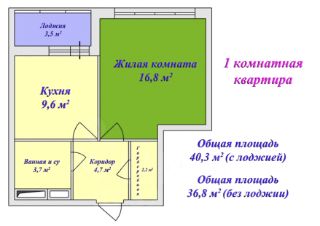 Общая площадь с лоджией — 40,3 м², без лоджии — 36,8 м².