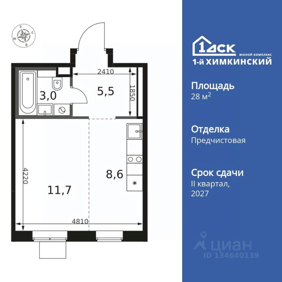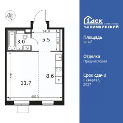 Продаётся квартира-студия номер 393 общей площадью 28.8 кв.м. на 7-м этаже 12 этажного здания. Отделка Whitebox.
