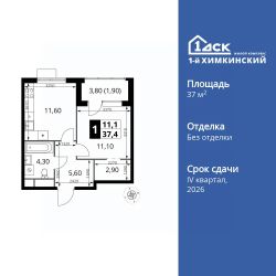 Продаётся 1-к квартира номер 262 общей площадью 37.4 кв.м. на 11-м этаже 16 этажного здания. Без отделки.