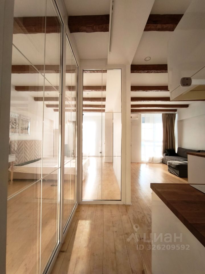 Функциональная планировка: просторная кухня- гостиная, одна комната - спальная со стеклянной стеной - перегородкой и выходом на лоджию.