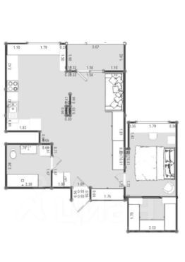 В квартире сделано минимальное количество межкомнатных перегородок, чтобы сохранить простор для жизни. Предусмотрено огромное количество закрытых мест хранения.