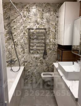 Зона ванной комнаты дополнена объемными модулями для хранения.