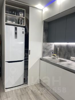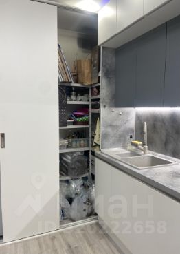 Функциональная кухня имеет множество отсеков для хранения. Холодильник скрыт - зона выполнена в формате шкафа , где предусмотрено место для дополнительного размещения стеллажей, на которых можно хранить консервированные продукты и крупногабаритные вещи.