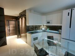 Кухня оборудована функциональным гарнитуром со встроенной техникой.