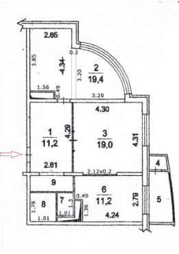 Квартира с очень интересной планировкой. Общая площадь квартиры с учетом площади балкона 73 кв.м, без учета площади балкона 67,6 кв.м, жилая площадь 30,2 кв.м. Комнаты (изолированные) 19 кв.м и 11,2 кв.м, кухня-гостиная 19,4 кв.м. Санузел совмещенный 4,2 кв.м. Просторная прихожая 11,2 кв.м, коридор 2,6 кв.м. Балкон с остеклением 5,4 кв.м (выход из спальни). Высота потолков 2,75 м. Все окна квартиры выходят на восточную сторону с прекрасным панорамным видом.
