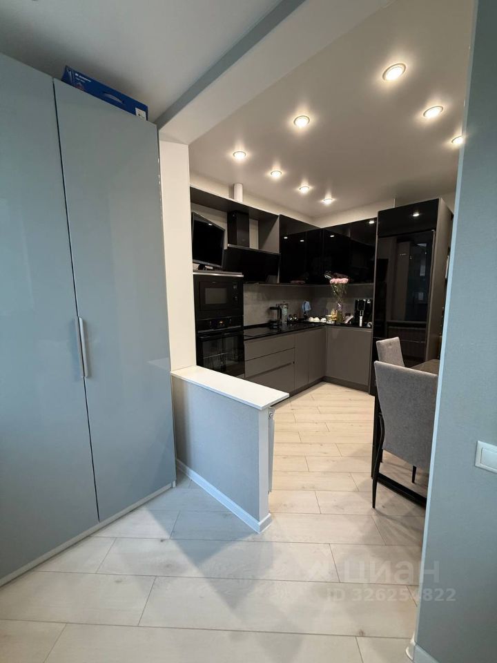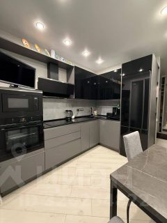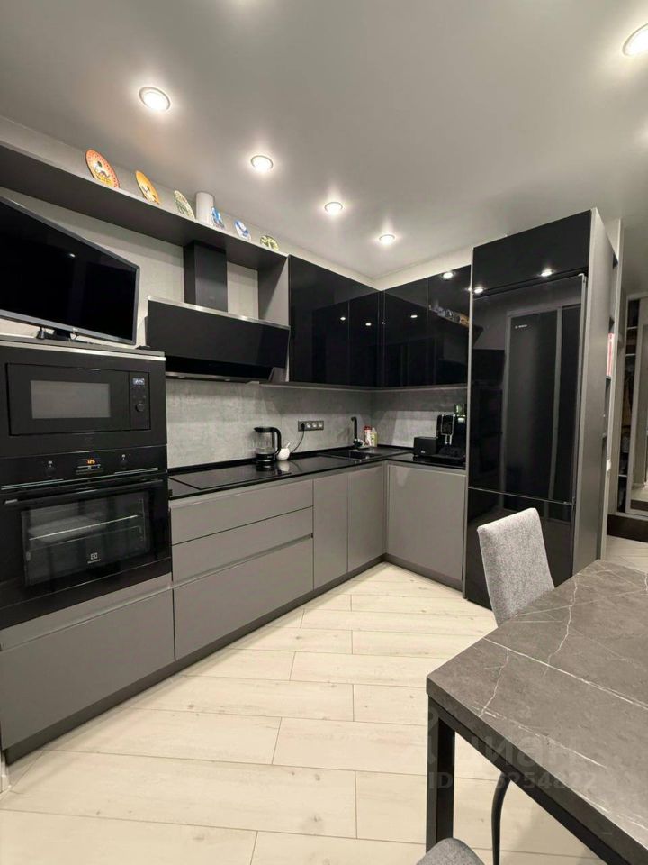 Кухня 10,6 м². Остаётся новому собственнику кухонная мебель со встроенной варочной панелью, вытяжкой, встроенным духовым шкафом, стиральной машиной и микроволновой печью, холодильником, в спальне остается кровать, шкаф на балконе.
