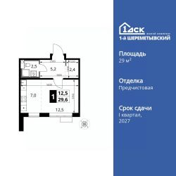 Продаётся квартира-студия номер 458 общей площадью 29.6 кв.м. на 15-м этаже 16 этажного здания. Отделка Whitebox.