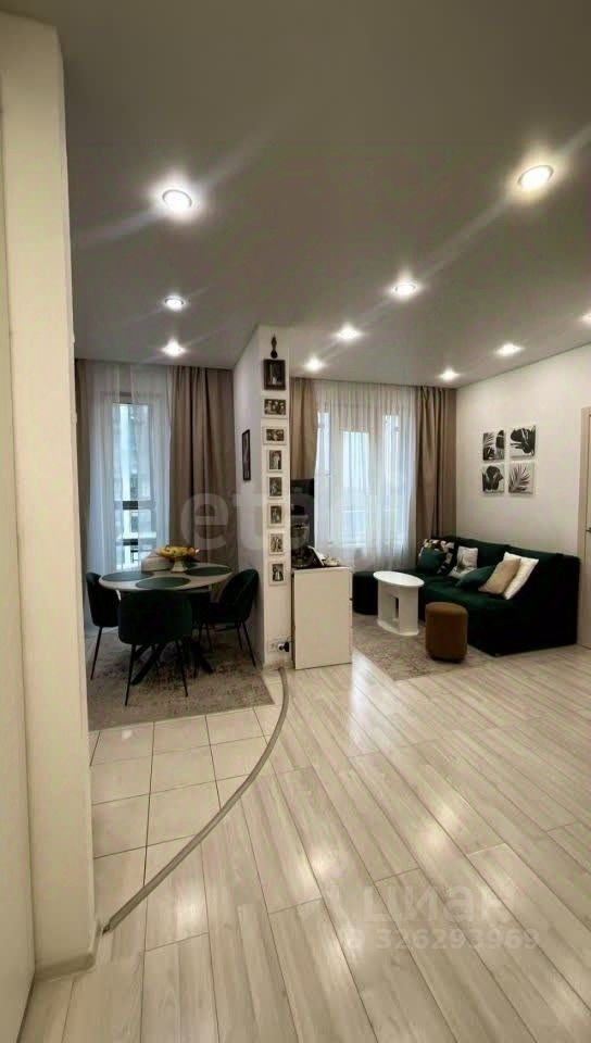Квартира расположена на 9 этаже 17-этажного монолитного дома, построенного в 2020 году. Высота потолков 2.8 м. Удачная планировка-распашонка: две изолированные спальни и кухня-гостиная. Современный ремонт, раздельный санузел, застеклённый балкон.