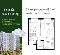 | 1-комнатная | 42.1 м² | 8 этаж из 18 | Срок сдачи — IV кв. 2026 года