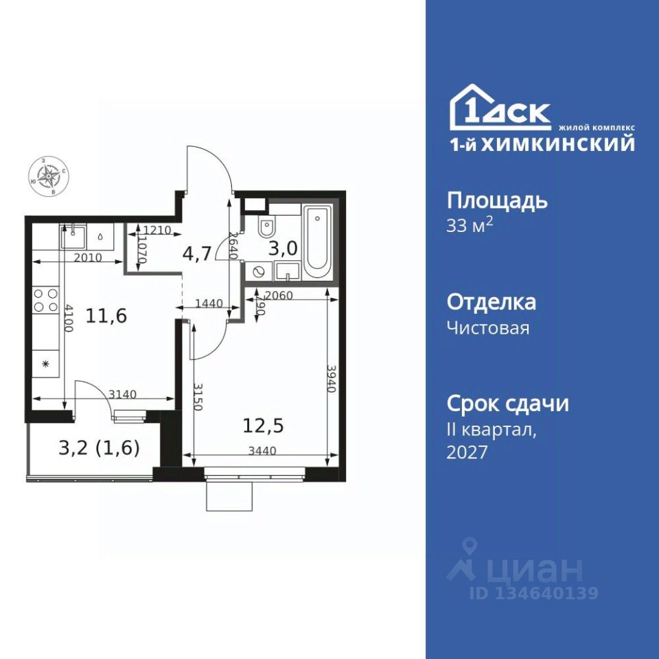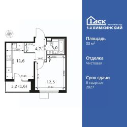 Продаётся 1-к квартира номер 250 общей площадью 33.4 кв.м. на 5-м этаже 14 этажного здания. Чистовая отделка.
