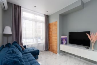 Квартира очень светлая за счёт больших панорамных окон, который выходят на солнечную сторону.