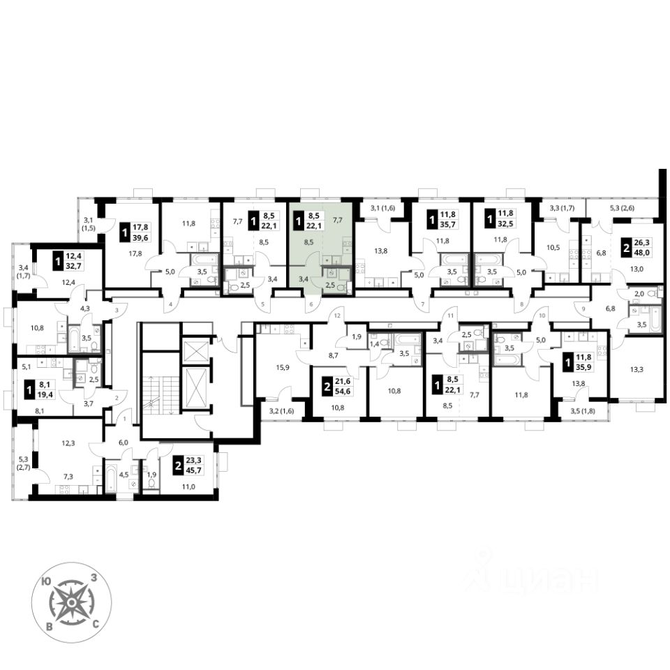 Продаётся квартира-студия номер 138 общей площадью 22.1 кв.м. на 13-м этаже 16 этажного здания. Отделка Whitebox.