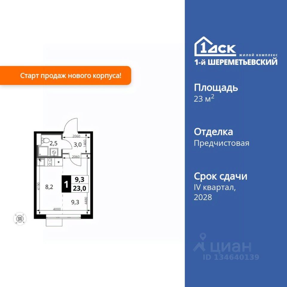 Продаётся квартира-студия номер 468 общей площадью 23 кв.м. на 11-м этаже 16 этажного здания. Отделка Whitebox. Цена с учётом скидки.