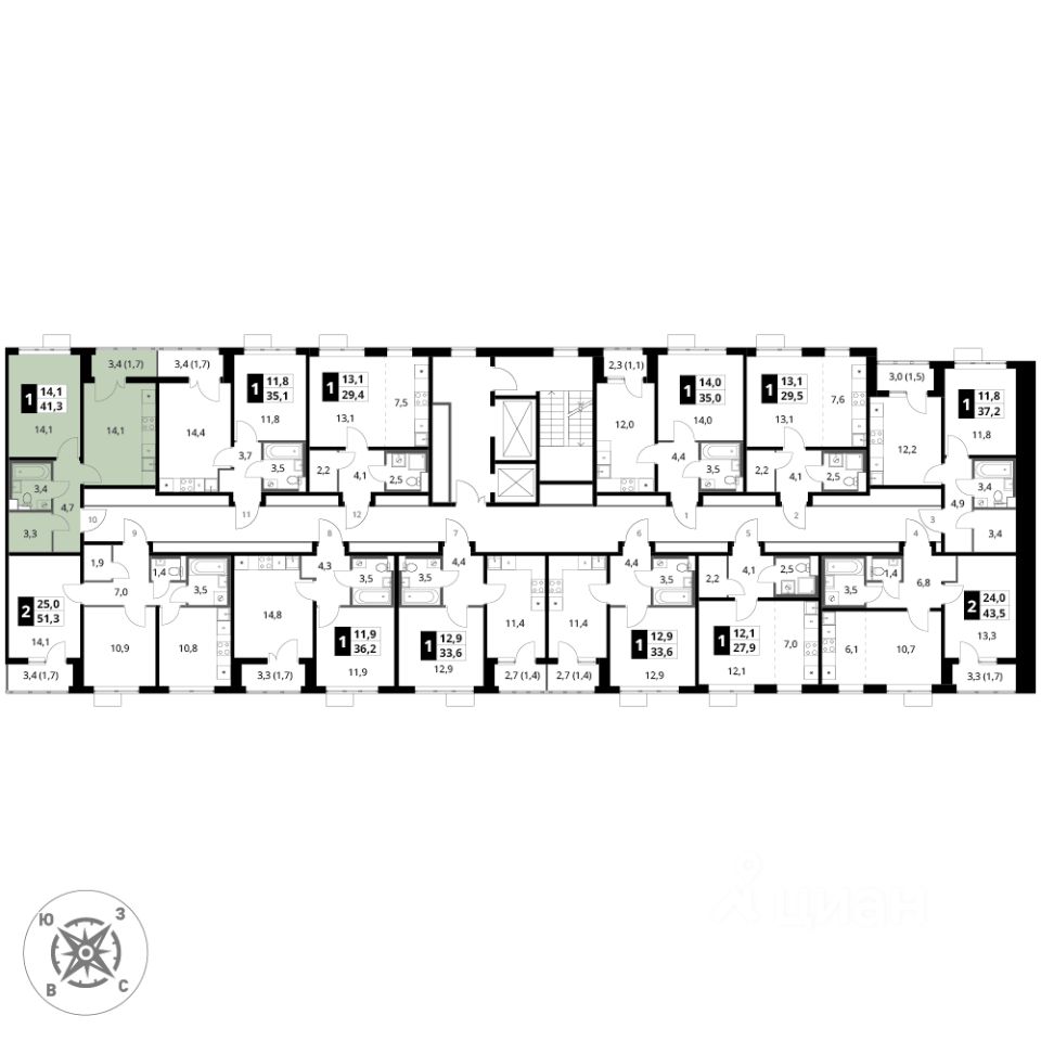 Продаётся 1-к квартира номер 871 общей площадью 41.3 кв.м. на 9-м этаже 16 этажного здания. Отделка Whitebox. Цена с учётом скидки.
