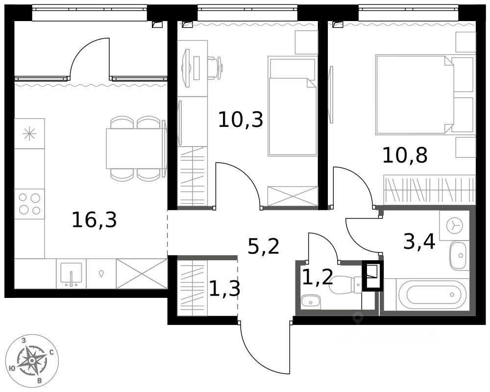 - Раздельный санузел - больше удобства для всех членов семьи.